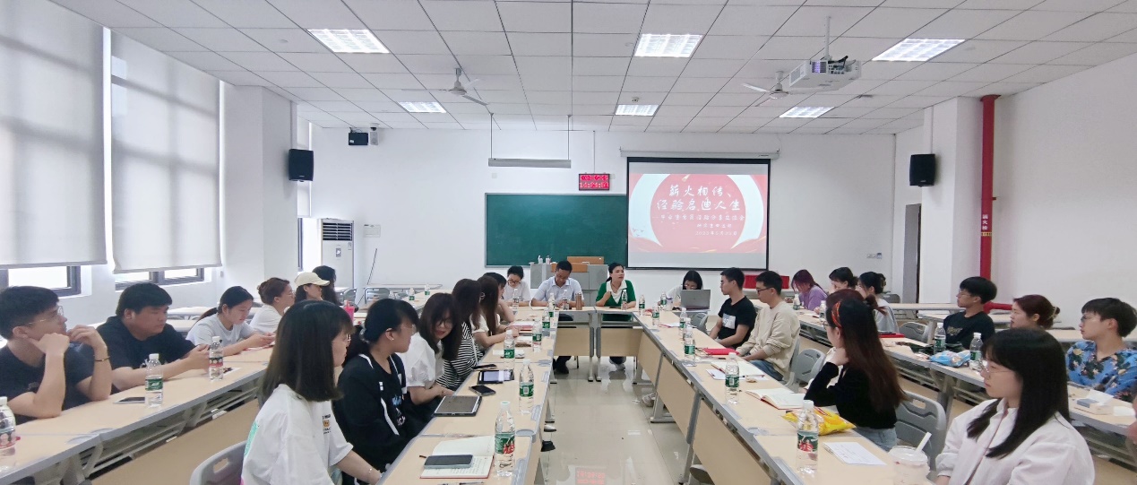 研究生第四党支部于2023年5月25日下午在7教412开展以“薪火相传、经验启迪人生”为主题的毕业生党员经验分享会。学院党委委员甘玲同志出席本次活动,支部书记易华山同志带领支部委员精心策划和组织,支部正式党员19名,预备党员5名,积极分子16名参加了本次活动。