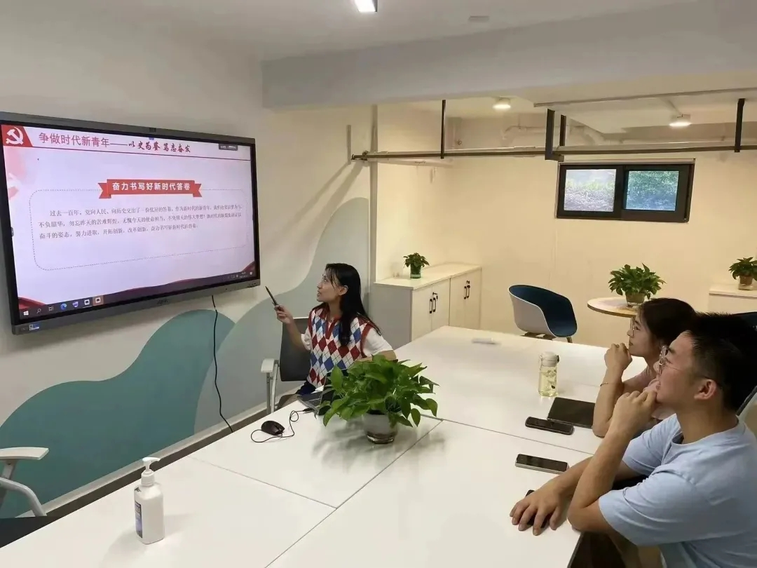 支部党员和入党积极分子,前期以个人学习为主,小组学习为辅,围绕“学思想,担使命,踔厉奋进新征程”,深入学习习近平新时代中国特色社会主义思想,并在分享会上,结合PPT讲演、视频等方式分享学习成果。