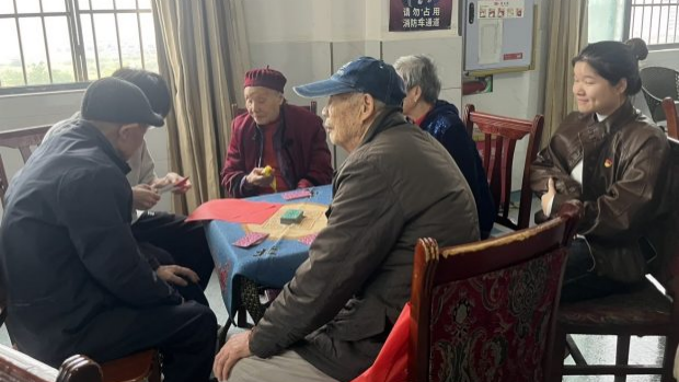 活动中,党员同志为老人们送上了新鲜水果和牛奶等慰问品,随后与老人们一同剪纸。在这些温馨的互动中,同志们与老人亲切交谈,热情的氛围感染着在场的每个人。时间在欢乐的聊天中慢慢流逝。临别之际,一位老人为大家唱起了毛泽东语录“世界是你们的,也是我们的,但是归根结底是你们的,你们年轻人朝气蓬勃”,热切地表达了对青年人的祝福和期望。