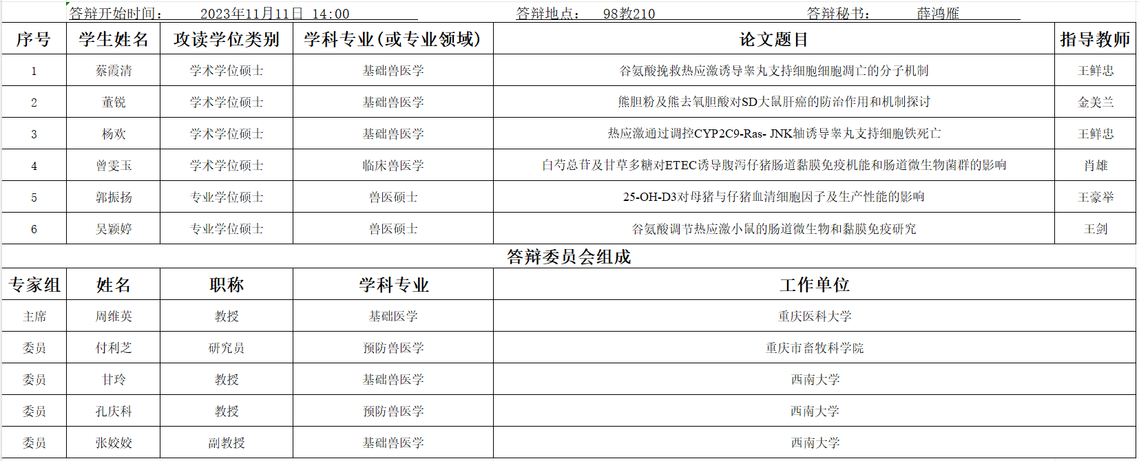 包子漫画 2023年秋季学期学位论文答辩安排公告