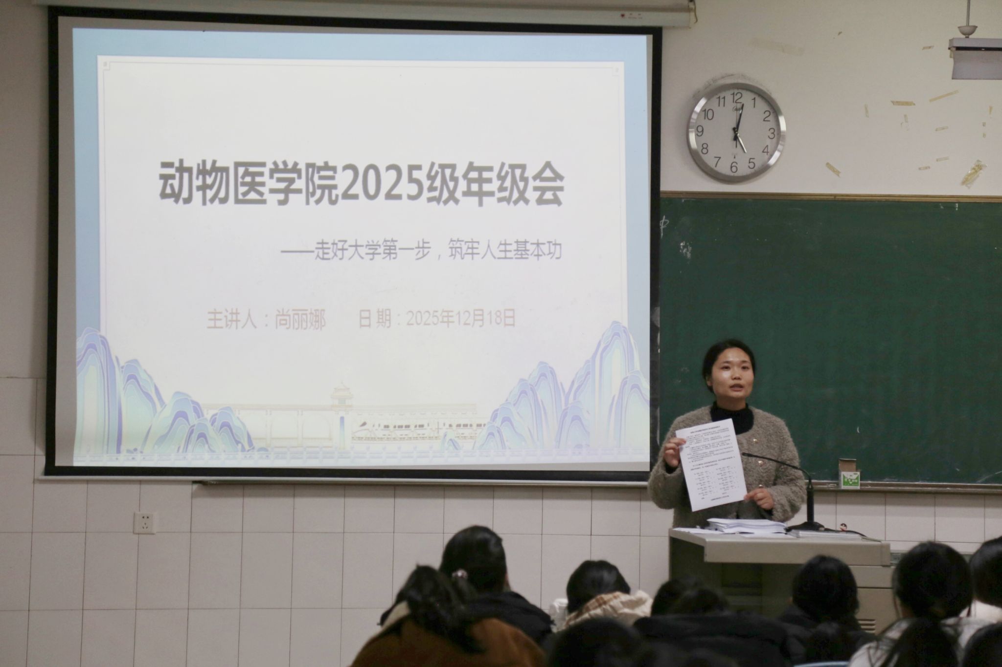 2025级辅导员尚丽娜在荣昌校区5303和2111教室组织召开“走好大学第一步,筑牢人生基本功”主题年级会。学院2025级370余名本科生参加。