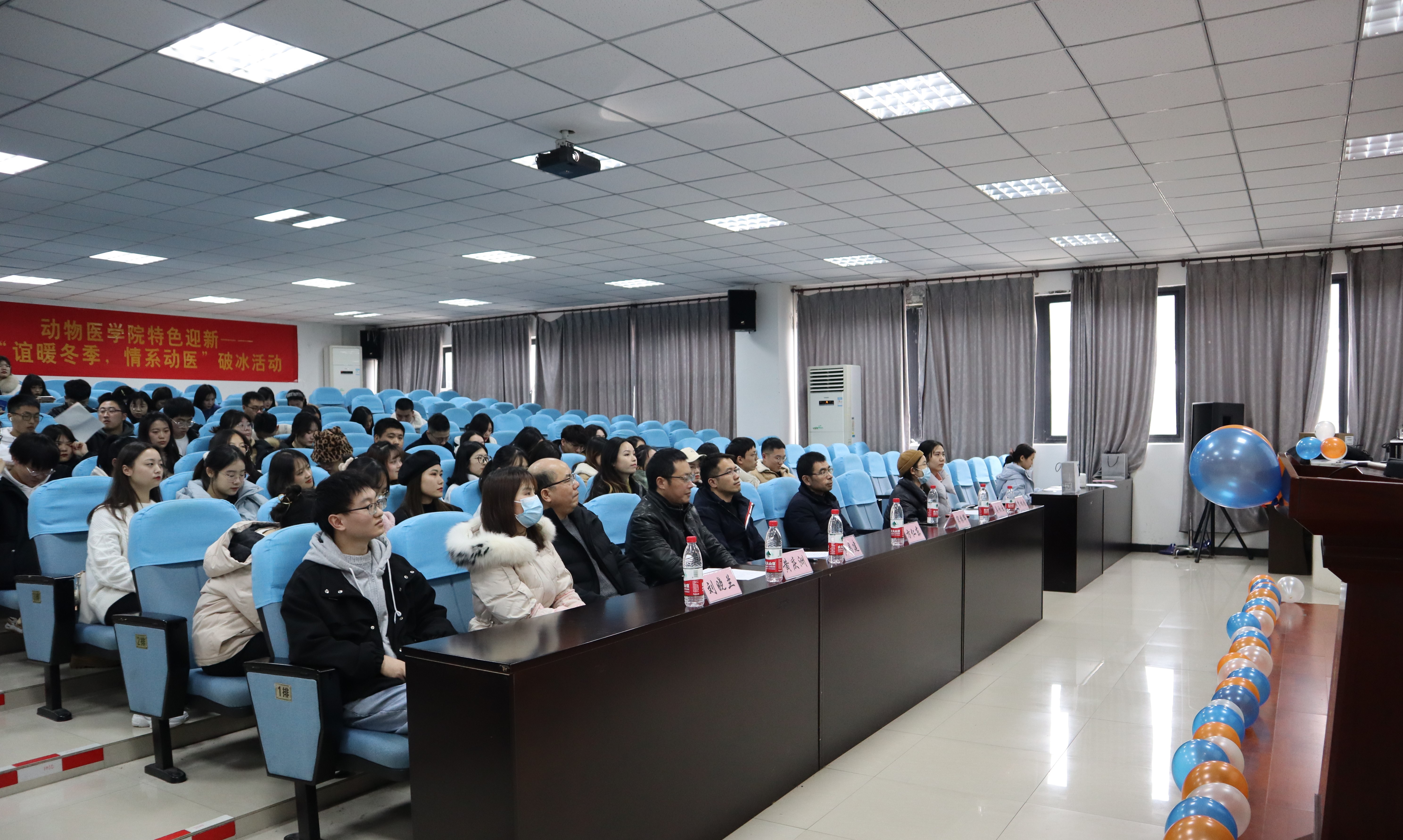 第一届特色迎新——“谊暖冬季 情系动医”破冰活动于动物医院报告厅成功举办。学院党委书记黄昌建、副院长方仁东、党委副书记黄庆洲、副院长宋振辉、团委书记刘晓兰、研究生辅导员李林园、吴秋云出席了活动。本次活动共有18支队伍参赛。