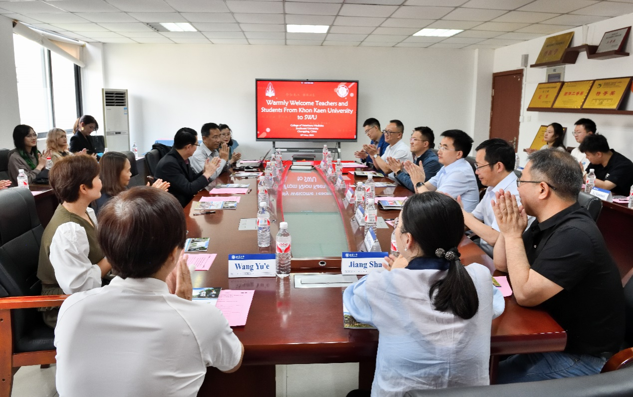 5月15日,学院举办了欢迎座谈会,孔敬大学兽医学院院长Bundit Tengjaroensakul、副院长Weerapol Taweenan、副院长Supranee Jitpean、主任Chanida Cha-in、学校国际合作与交流处副处长陈炳君、国际学院外国学生招生办公室王鹊、学院党委书记黄昌建、院长方仁东、副院长陶晓奇和学院老师参加座谈。