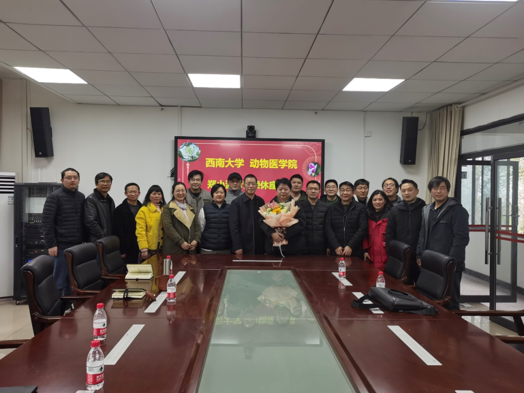 最后,方仁东院长和黄昌建书记分别从郑老师坚守教育初心、矢志不渝为党育人、为国育才,特别在临床兽医学人才培养及宠物眼科病手术治疗等研究方面取得的成绩高度肯定,最后向郑老师表达了深深的谢意与美好祝福,同时希望郑老师荣休后继续关心学院各项事业发展,常回家看看!