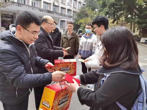 1月30日,学院党政领导还慰问了留校学生,为学生送上了新年红包和慰问品。