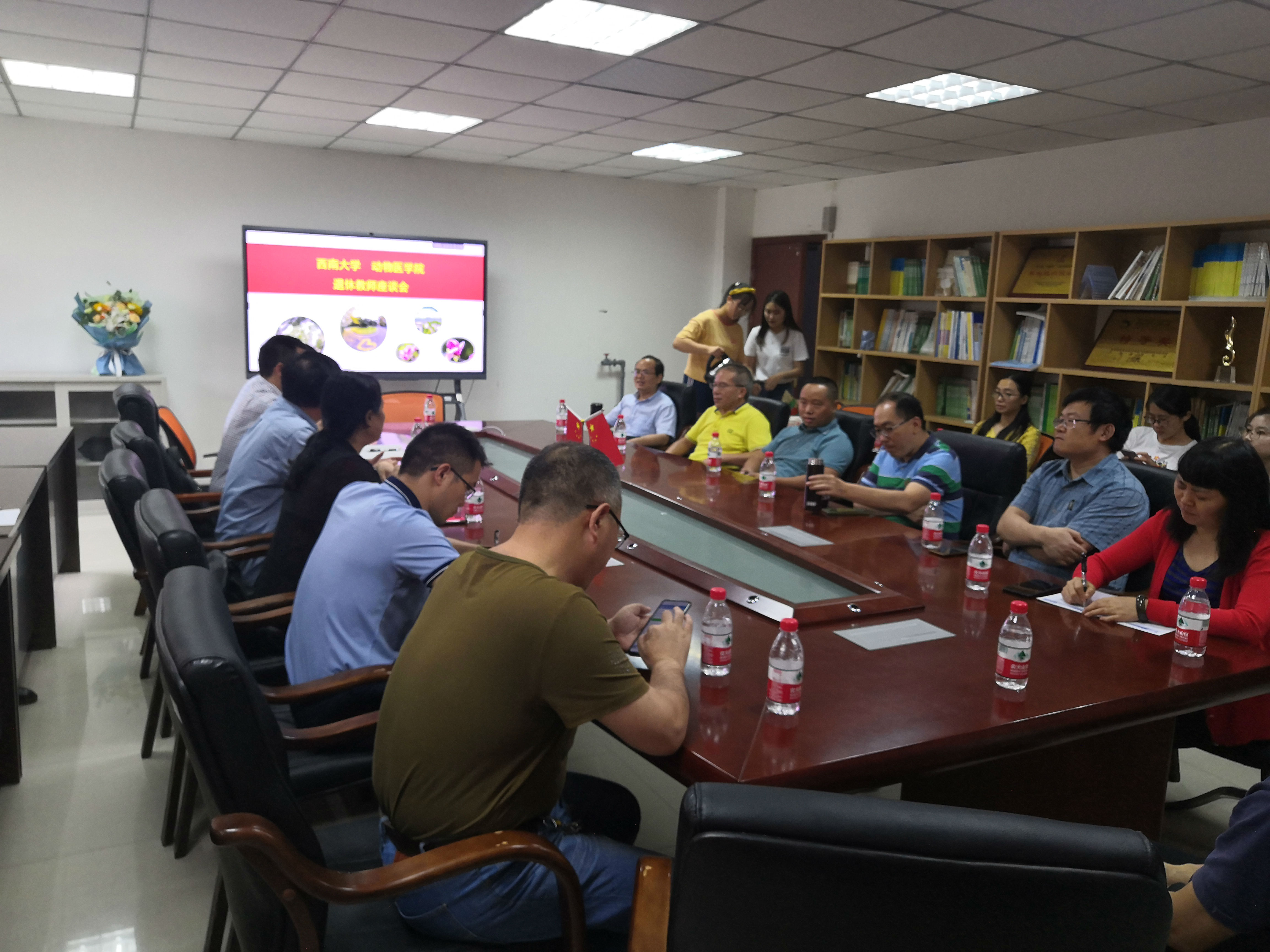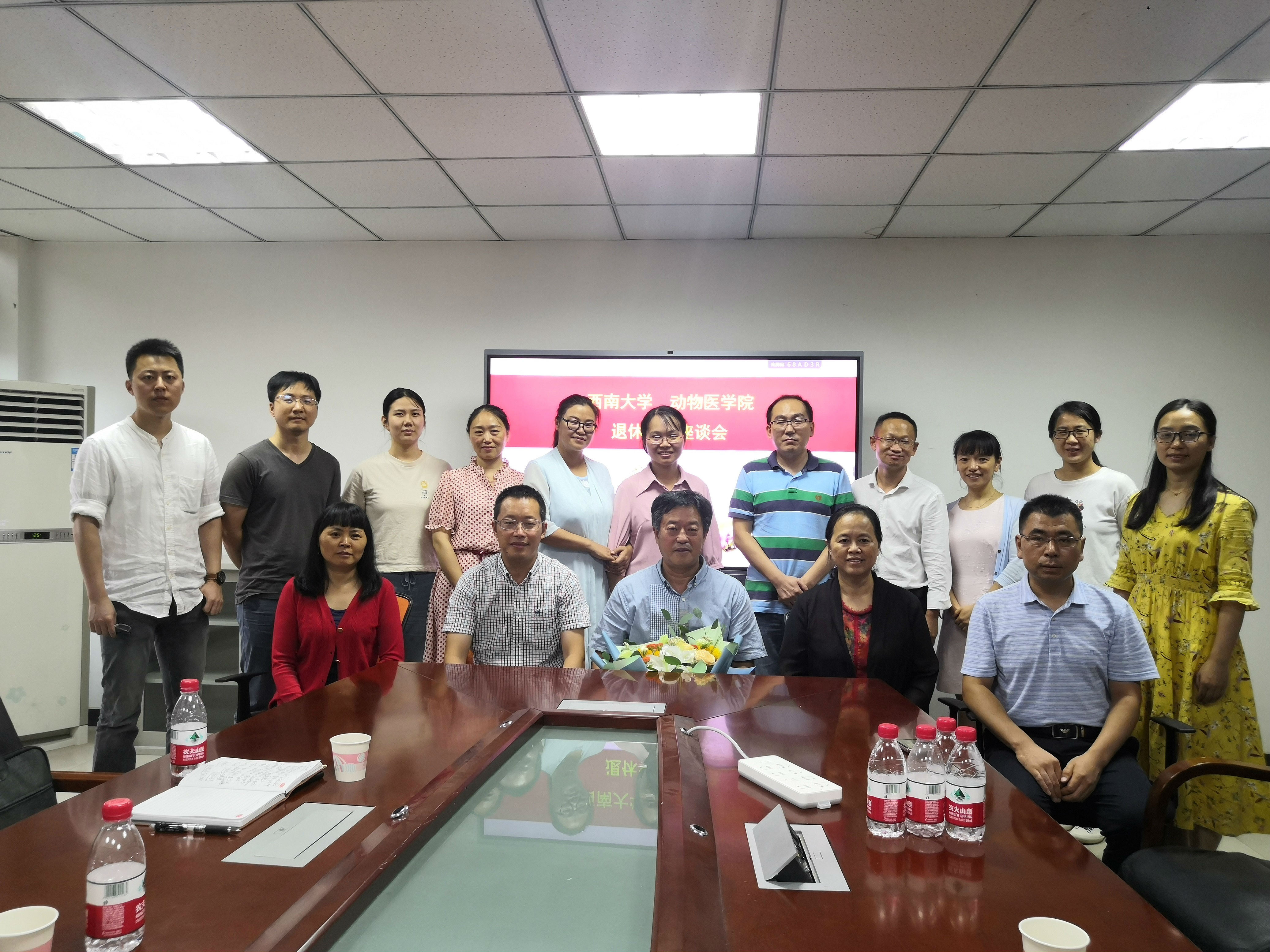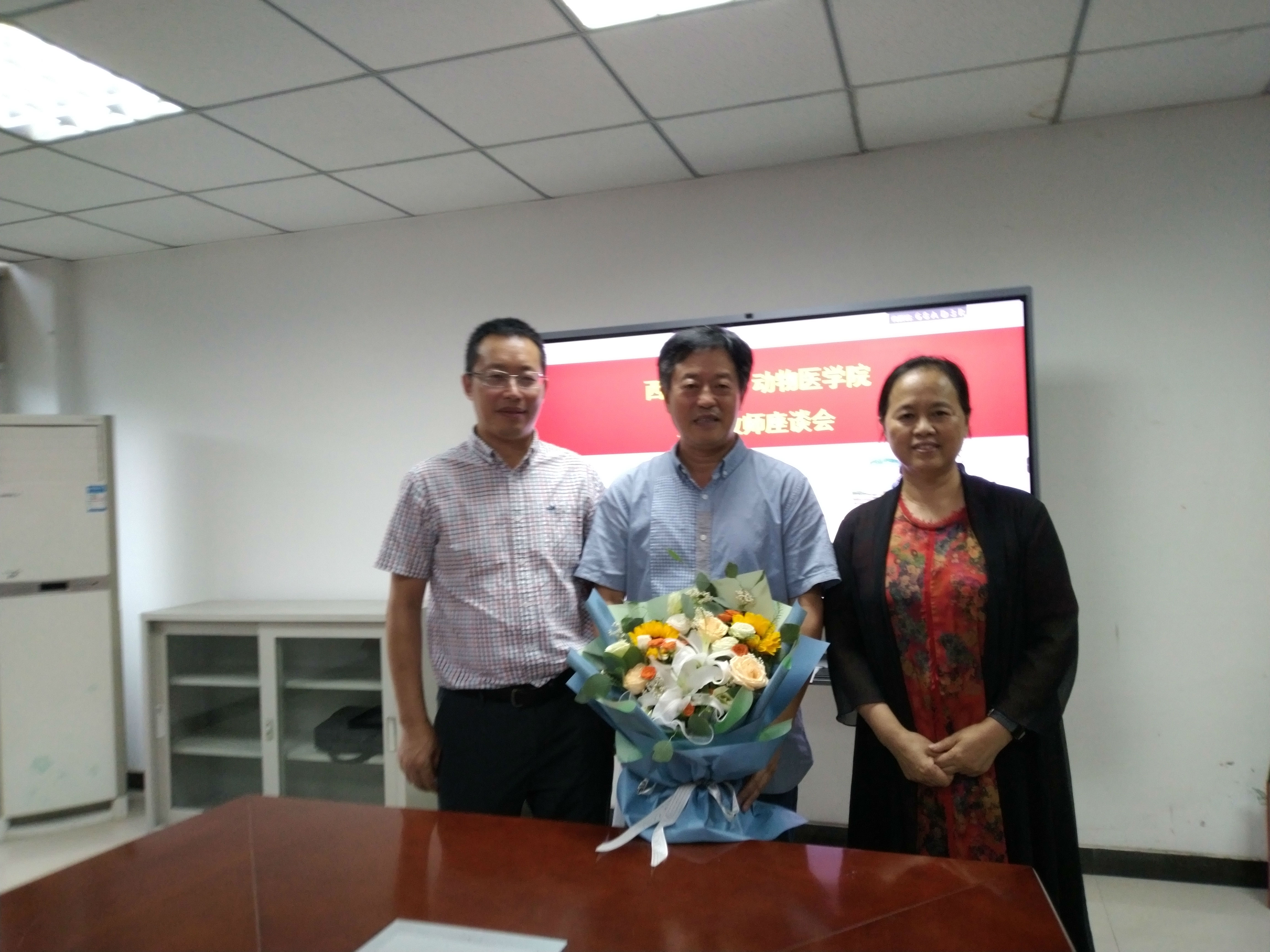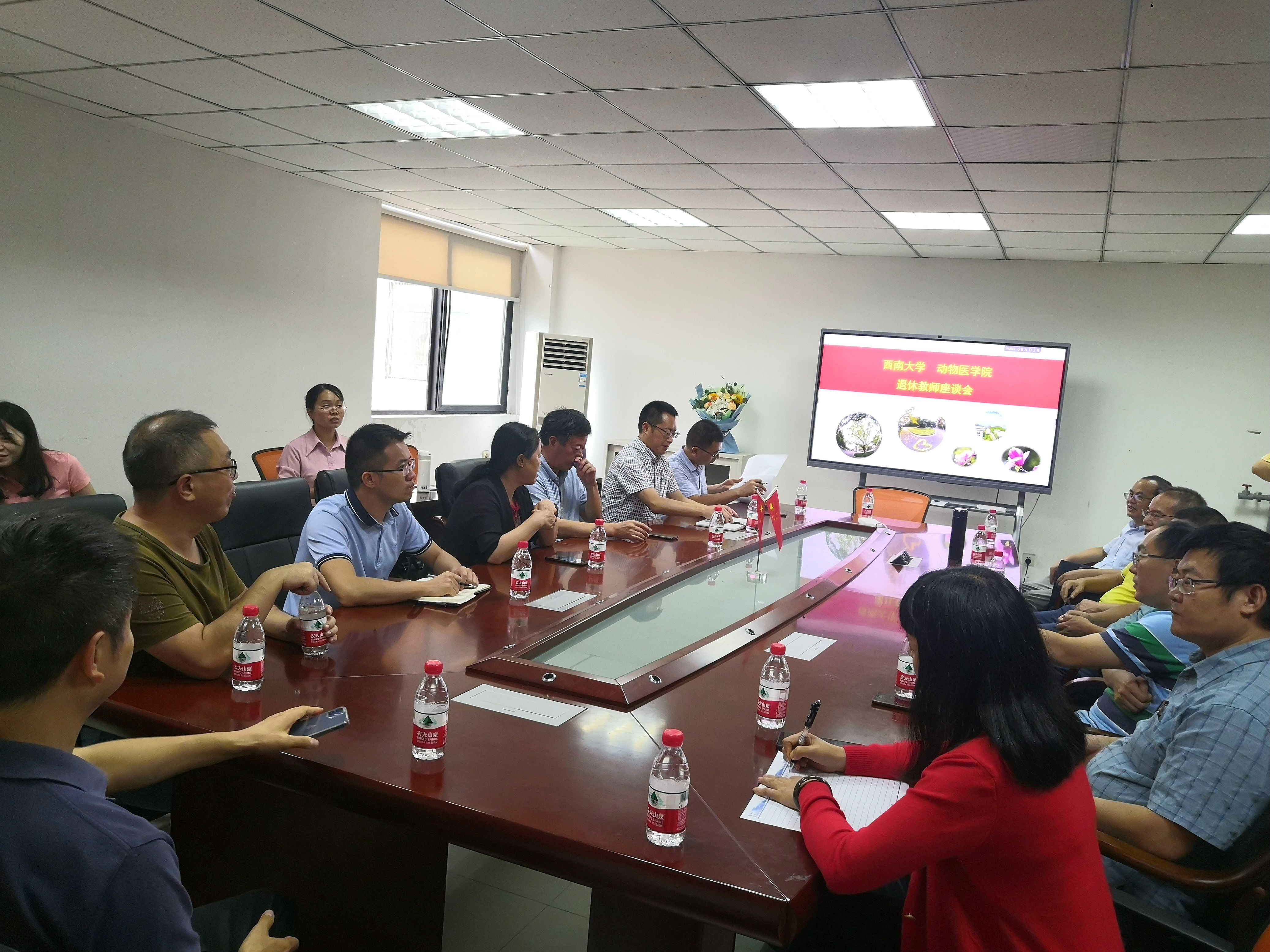 原动物科技学院党委书记王豪举同志举办退休座谈会。参会人员有学院党委书记黄昌建、刘娟院长、宋振辉副院长、方仁东副院长及王鲜忠、彭远义、孔庆科、王自立等各系教师代表参加座谈会。