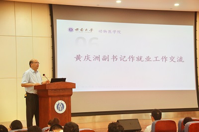 黄庆洲副书记对往届就业、考研情况进行剖析。他指出,学院将采用动态公布、家校联合、就业台账等方法进行就业帮扶,为同学们打造良好的就业条件。