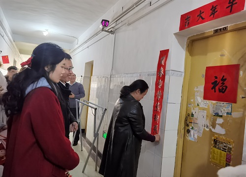 随后,学院党政领导参观了部分留校学生宿舍,并和学生一起贴春联,为即将到来的新春佳节增添了浓厚的喜庆氛围。