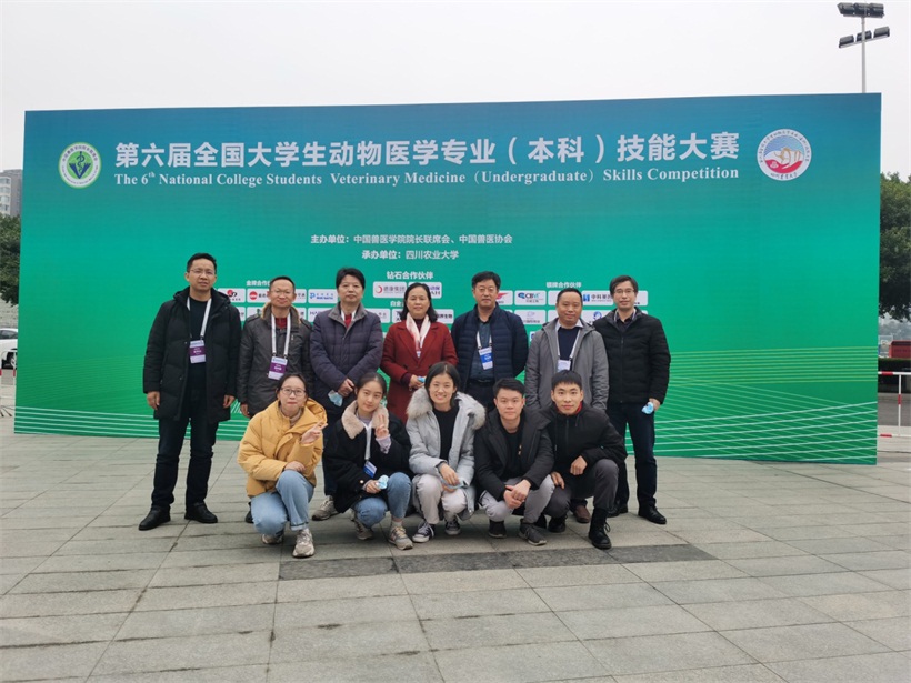 动物医学本科专业五名学生参加了由中国兽医学院院长联席会和中国兽医协会主办,四川农业大学承办的第六届全国大学生动物医学专业(本科)技能大赛,比赛项目包括:山羊瘤胃切开术、病原菌检查与血凝试验、禽的病理剖检。本次大赛吸引了来自全国包括中国农业大学、南京农业大学、华中农业大学、西北农林科技大学、华南农业大学等68所高等农林院校动物医学专业代表队,共800多位师生参加。