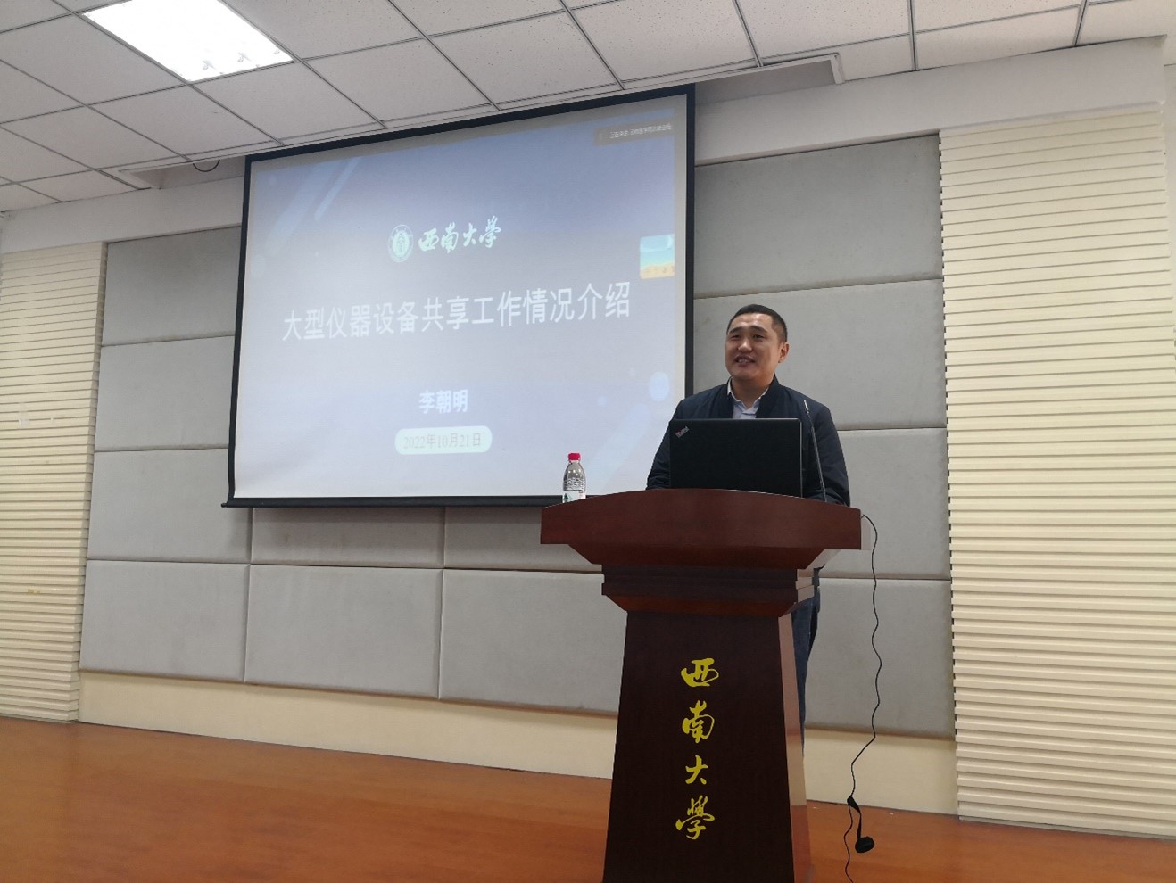 李朝明科长分享了我校现有大型仪器共享设备的现状和管理平台使用情况,讲解了学校现有的大型仪器设备管理的制度和工作体系,介绍了学校共享平台管理运行成效考核的标准,并详细演示了如何使用学校大型仪器共享平台。方仁东院长对李朝明科长莅临学院对师生开展培训表示感谢,希望学院师生更加有效的使用好学校的大型仪器设备共享平台。学院要参照学校大型仪器设备共享平台的管理经验和做法,进一步加强院级仪器设备共享平台的管理,为学院师生做好服务。