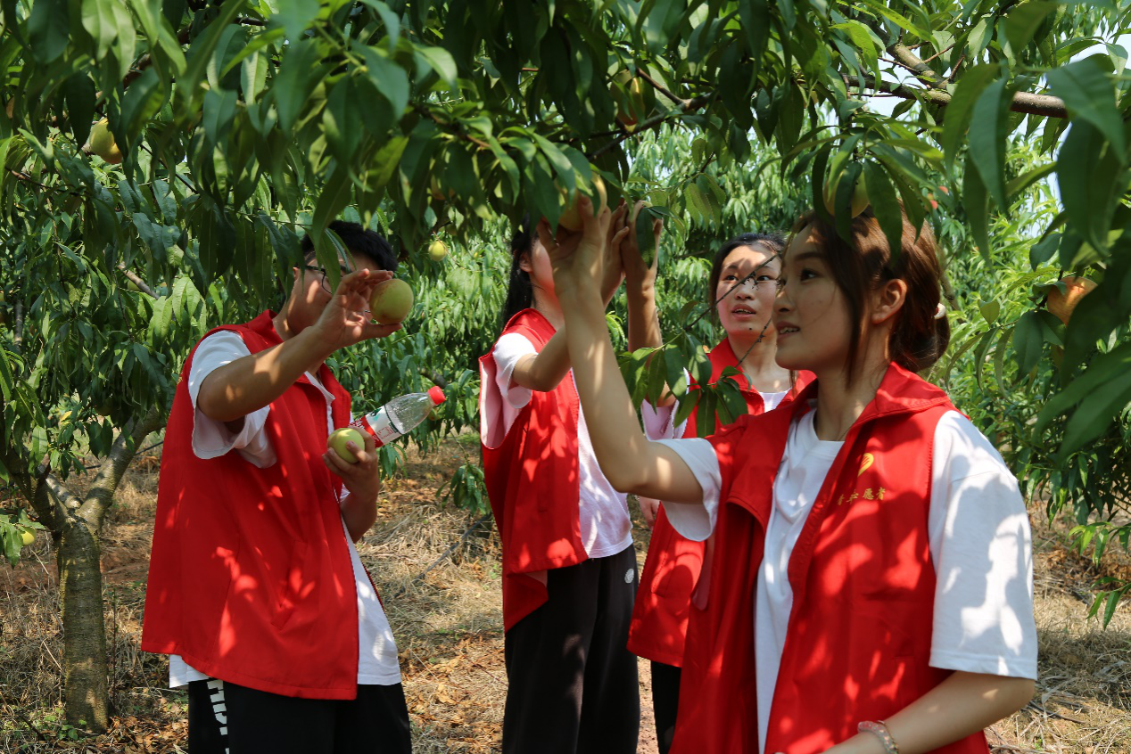 同学们来到重庆市荣昌区玺之泉生态农业种植基地,走进果园进行脆桃采摘,大家在感叹农民种植不易的同时,也体会到了通过自身劳动换来果实的喜悦,作为农学学子,每一位同学都应当把赓续劳动精神的重任担在肩,通过劳动将农学发扬光大,通过劳动创造更好的未来。