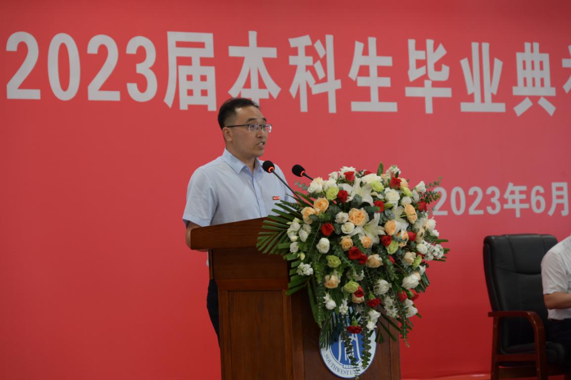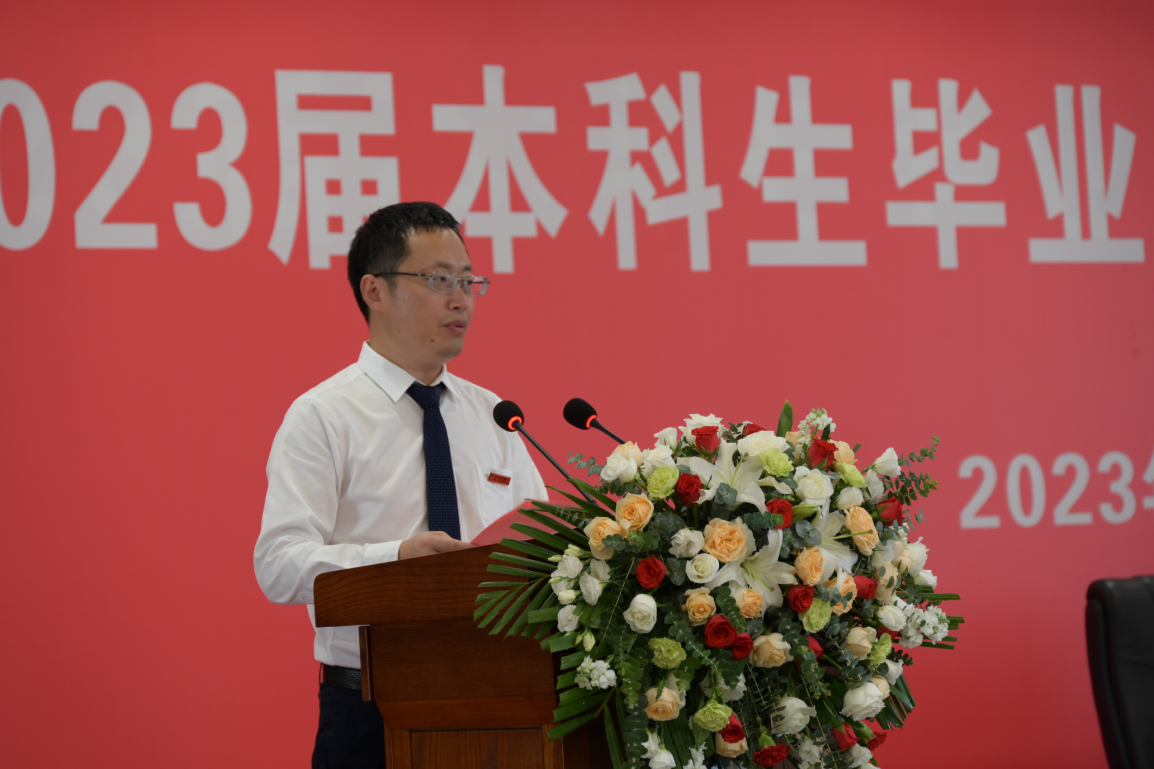 在碚优秀毕业生张明杰同学发言,他讲述自己在大学四年成长的点点滴滴,以及在校期间的成长经历,感恩母校和学院的辛勤培育,并寄语同学们前程似锦,永葆初心!