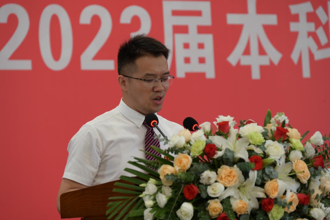 教师代表廖永洪老师在荣典礼上对即将踏上新征程的全体2023届毕业生给予了三点建议:一是心怀感恩,珍惜缘分;二是勇于挑战,突破自我;三是持之以恒,不忘初心。教师代表黄兰香老师在碚典礼上寄语毕业生要踏实做事,老实做人,敢于突破自我,不断创新,以成就自我。