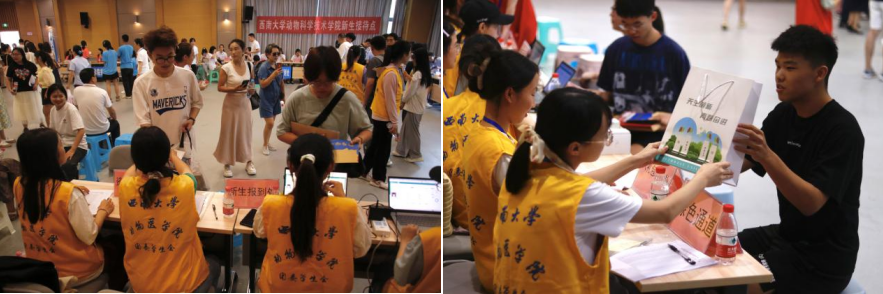 许多初到西大的学子在新生签名墙和新生合照墙留下了在西大的第一抹回忆,也饱含着对未来的期许。