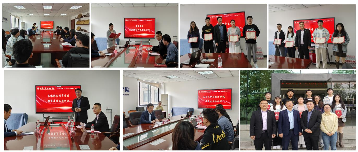首先,艾迪威集团中国区销售总监马超对奖学金获得者表示祝贺,并介绍企业的基本情况、业务范围及发展规划、公司理念;随后,马超、李文杰为获奖学生颁发证书。