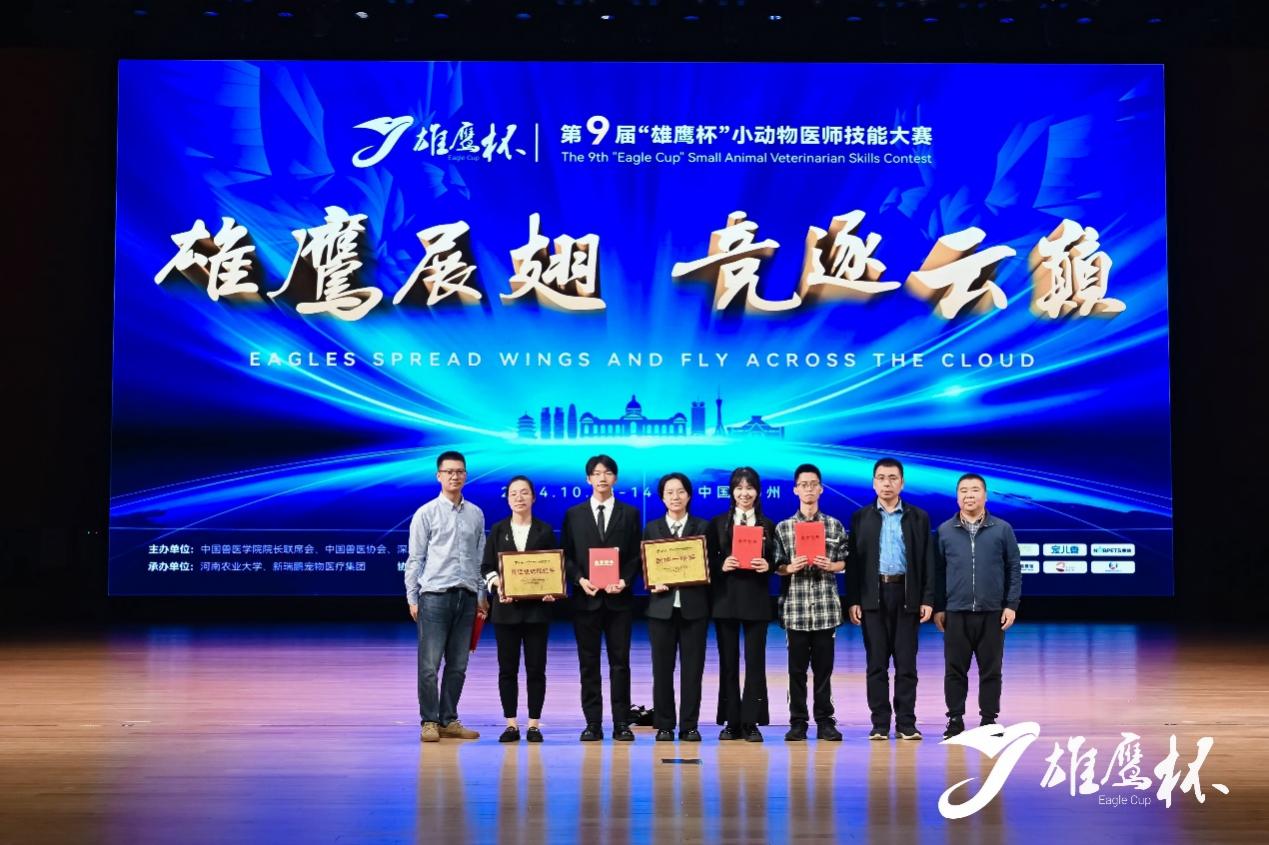 学子荣获第九届“雄鹰杯”小动物医师技能大赛大学生组“团体一等奖”,学院荣获“最佳组织院校奖”。