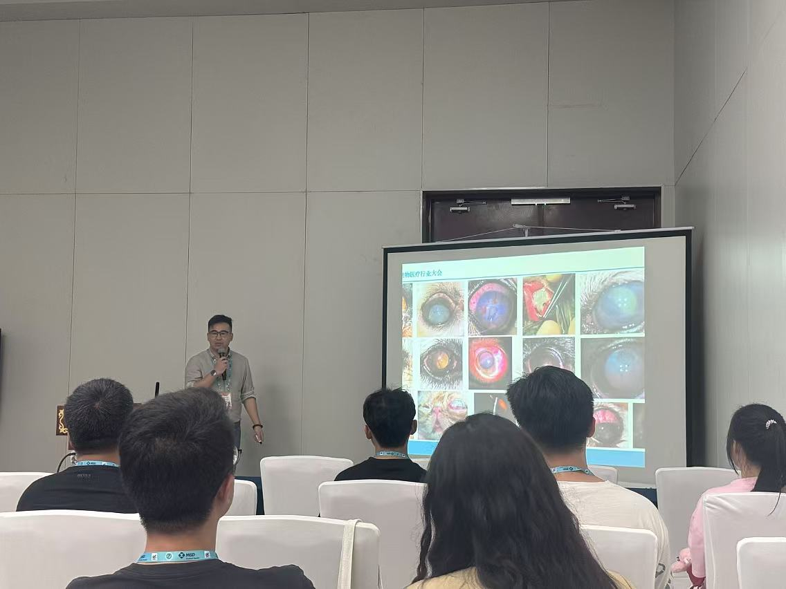 胥辉豪副教授,作为大会副秘书长在此次大会中担任了全国眼科实操技能比赛主裁判,赛后对各参赛选手进行了总结,并详细解读了兽医眼科专科医生的培养路径,为广大年轻临床医生指引了方向。同时,胥辉豪还围绕“犬猫眼科急症判断与诊断要点”主题进行了专题报告,为广大临床医生提供了宝贵的临床知识与经验。