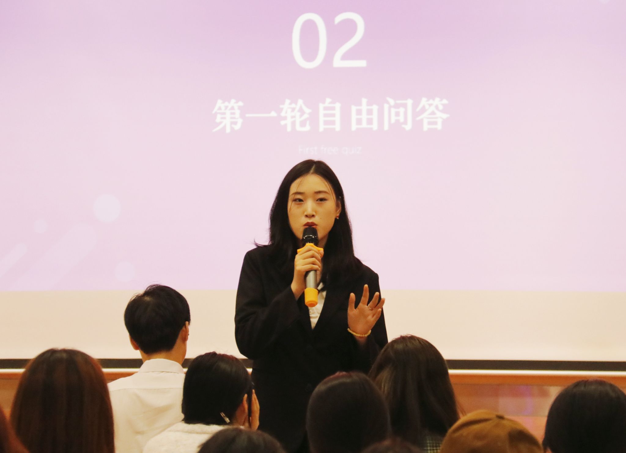 刘晓兰老师上台为本次分享会致辞。她希望同学们能够通过这些优秀学长学姐的经历与成就,明确自己的成长目标,激发学习斗志,并鼓励同学们把握机会,勇于尝试,奋发向上。
