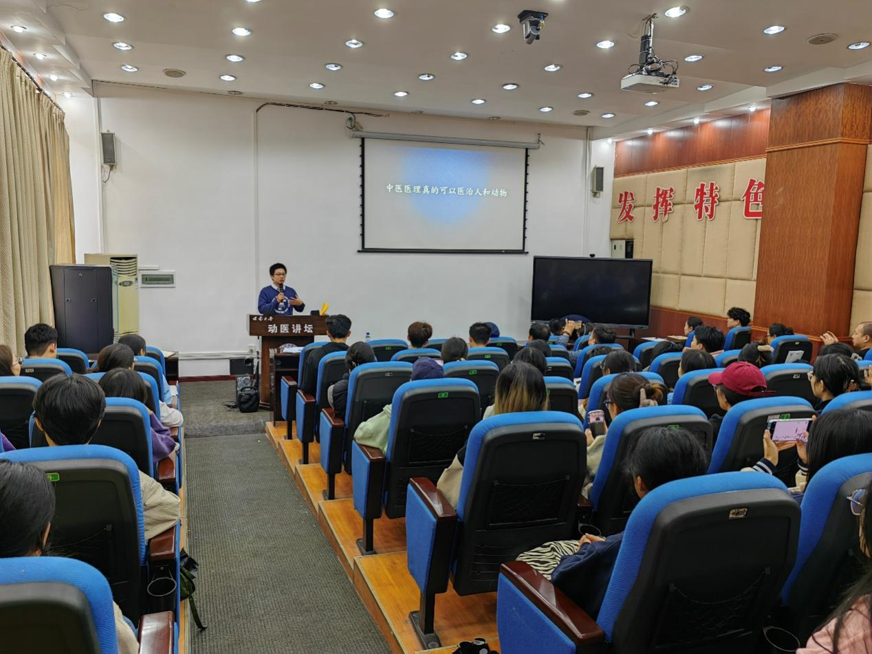 随后,吴昆泰先生、李松洋会长与学院领导及中兽医系全体教师进行了交流座谈,吴昆泰先生介绍了中兽医在台湾的兴起和教育现状。李松洋会长与师生围绕中(兽)医药在人和动物临床方面的应用,从实际案例分析、科学证据和个人体会等方面进行了深入交流。