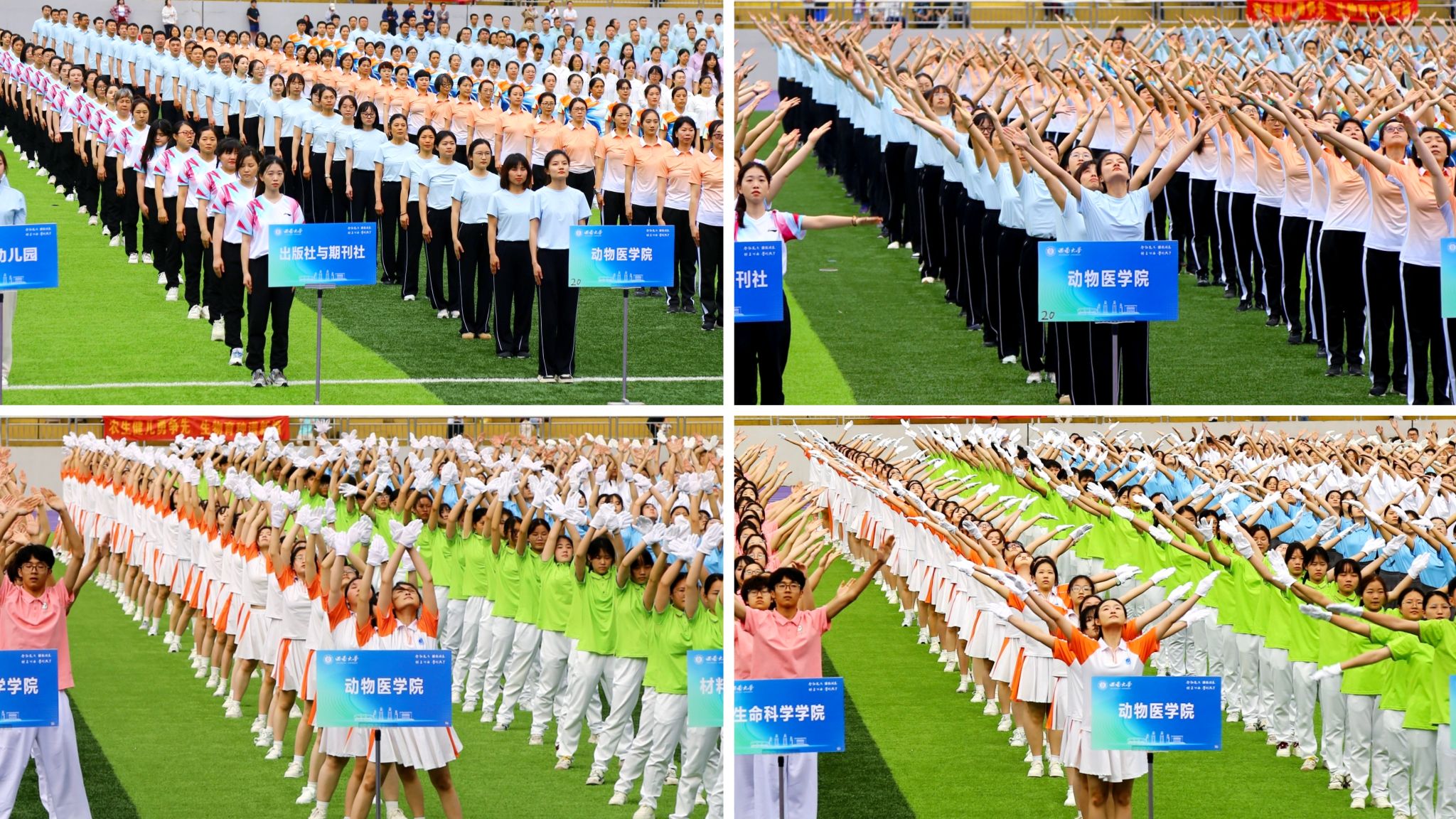 广播体操表演时,学院师生以整齐的动作和饱满的精神,将第九套广播体操的规范与活力完美呈现。