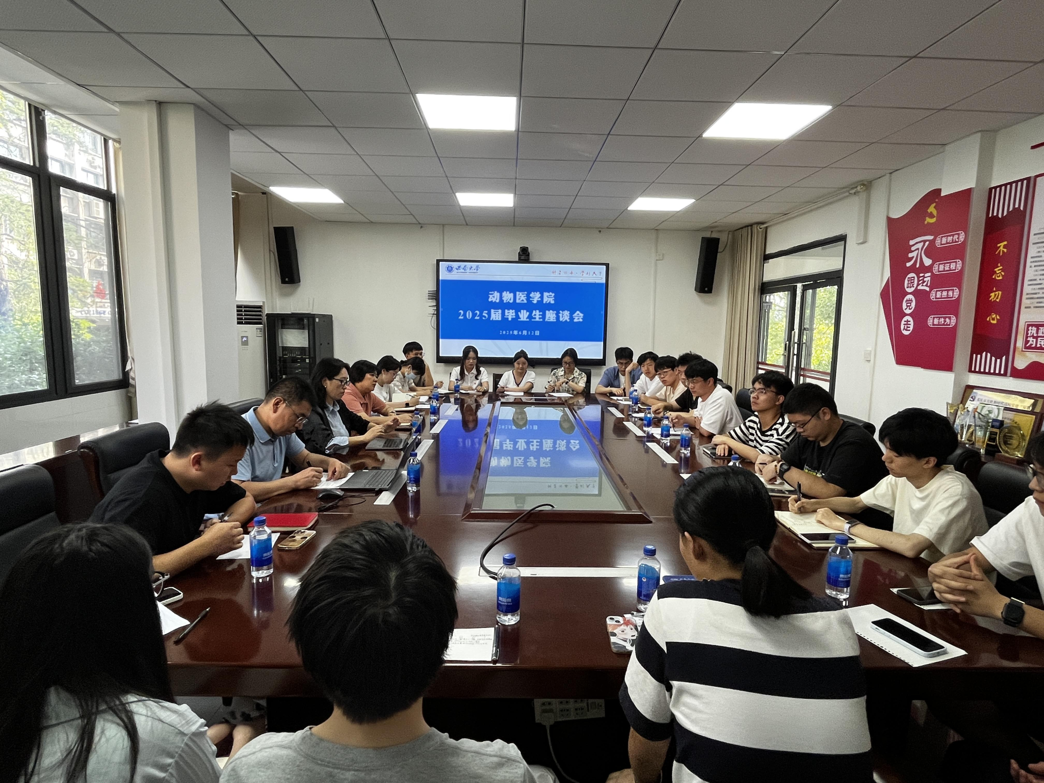 组织召开2025届毕业生专题座谈会。学院党委书记李海燕,党委副书记兼纪委书记罗丹,副院长宋振辉,团委书记兼2020级辅导员刘晓兰,2021级辅导员张秀虹玉及2025届本研毕业生代表共同参会。