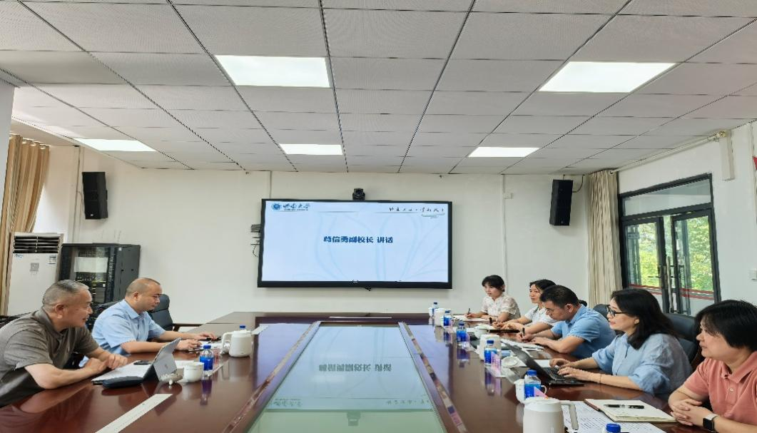 李海燕书记着重汇报了学院校庆方案及“十五五”规划编制思路,从学科建设、人才培养、科研创新等维度,剖析了当前面临的高端人才引育、跨学科平台搭建等发展难点,表达了攻坚克难的决心。