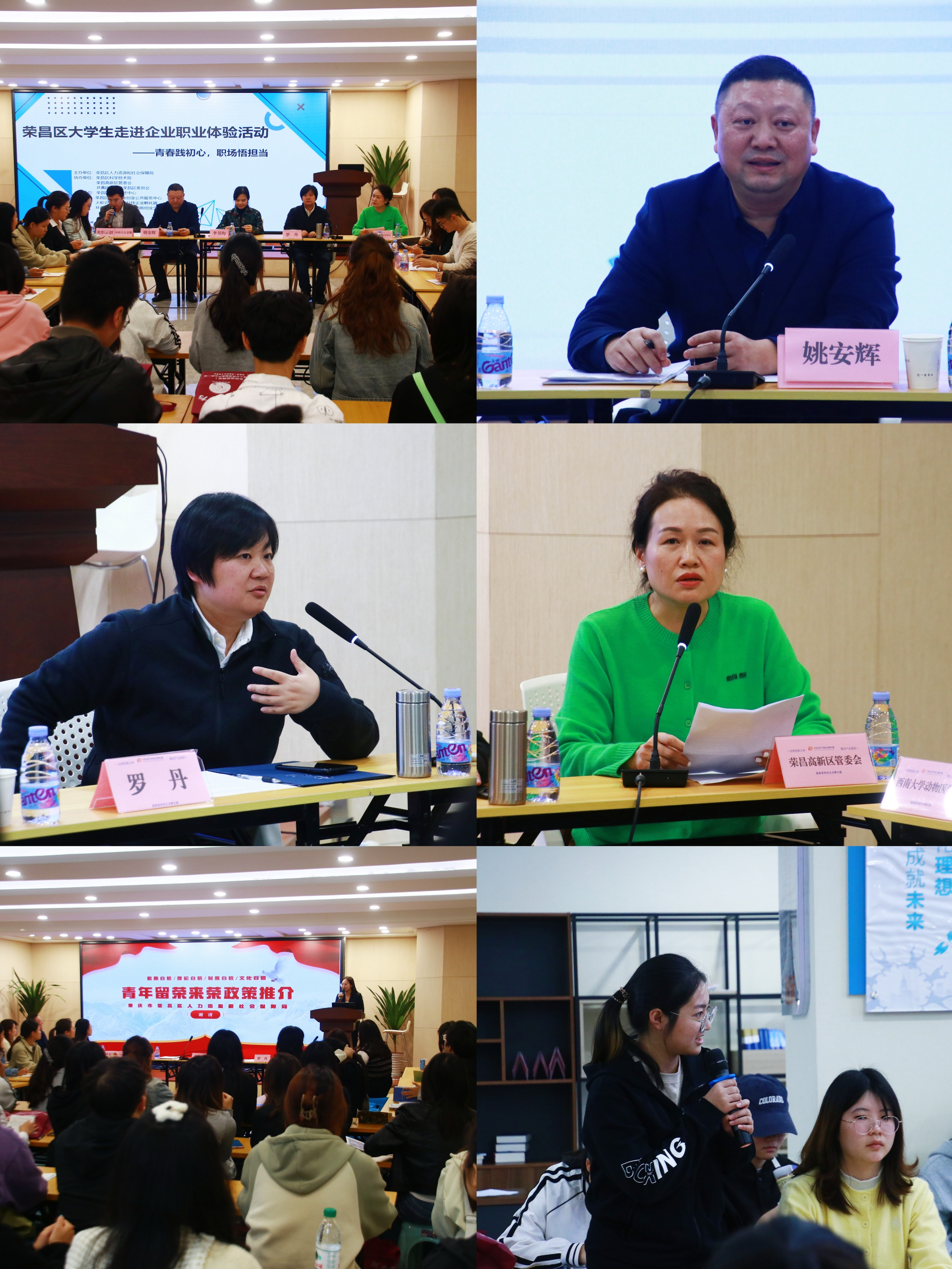 260名学子深入荣昌高新区,实地探访重点企业与创新平台。当日下午,学院党委副书记罗丹带队出席活动座谈会,与荣昌区相关领导、企业代表及学生共同探讨人才培养与职业发展。