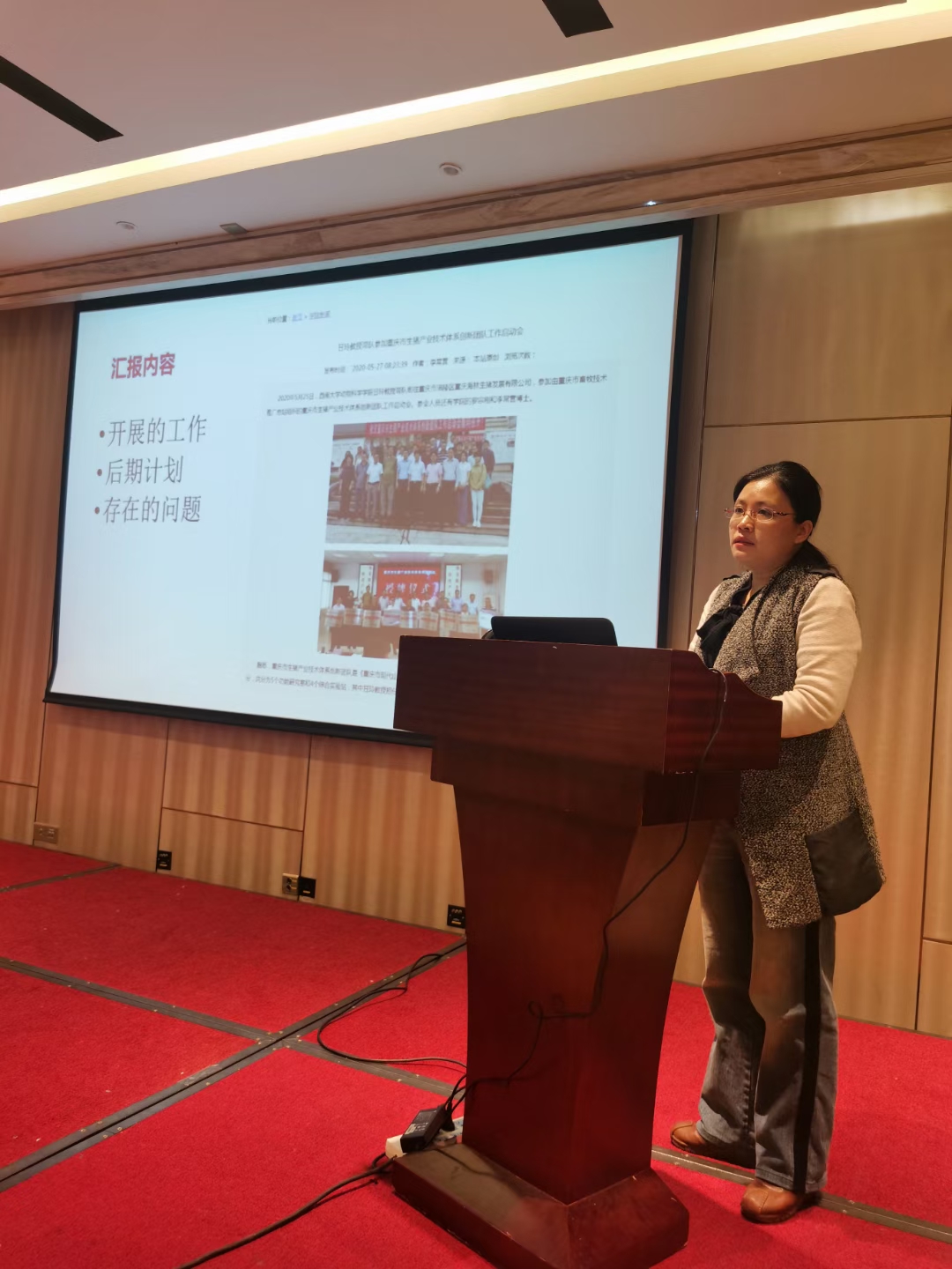 甘玲教授作为重庆市生猪产业技术体系创新团队畜牧机械与智能装备功能研究室主任带领该室成员罗宗刚、李常营博士及许颖参与了推进会,并从前期的研究进展、研究中存在的问题及进一步的工作计划等方面在会上做了汇报发言。在听取了各功能研究室和试验站前期工作汇报后,国家生猪产业体系岗位专家,市农业农村委种业处、科教处等处室有关领导分别进行了点评,首先肯定了团队成员对前期工作的付出,同时也对今后的工作提出要求和期望。