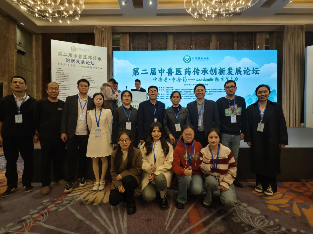 获“中兽医药传承创新发展平台”成员单位,学院刘娟教授受聘为“中兽医(农场动物)专科委员会委员”,曹立亭教授受聘为“中兽医药传承创新发展平台建设委员会委员”并荣获“中国兽医协会2024年“恒通杯”创新发展中兽医奖”称号。研讨会上,学院教师董世起博士作为青年学者在“宠物中兽医诊疗专场”做了题为“犬猫中风的针药结合诊治”的专题报告。