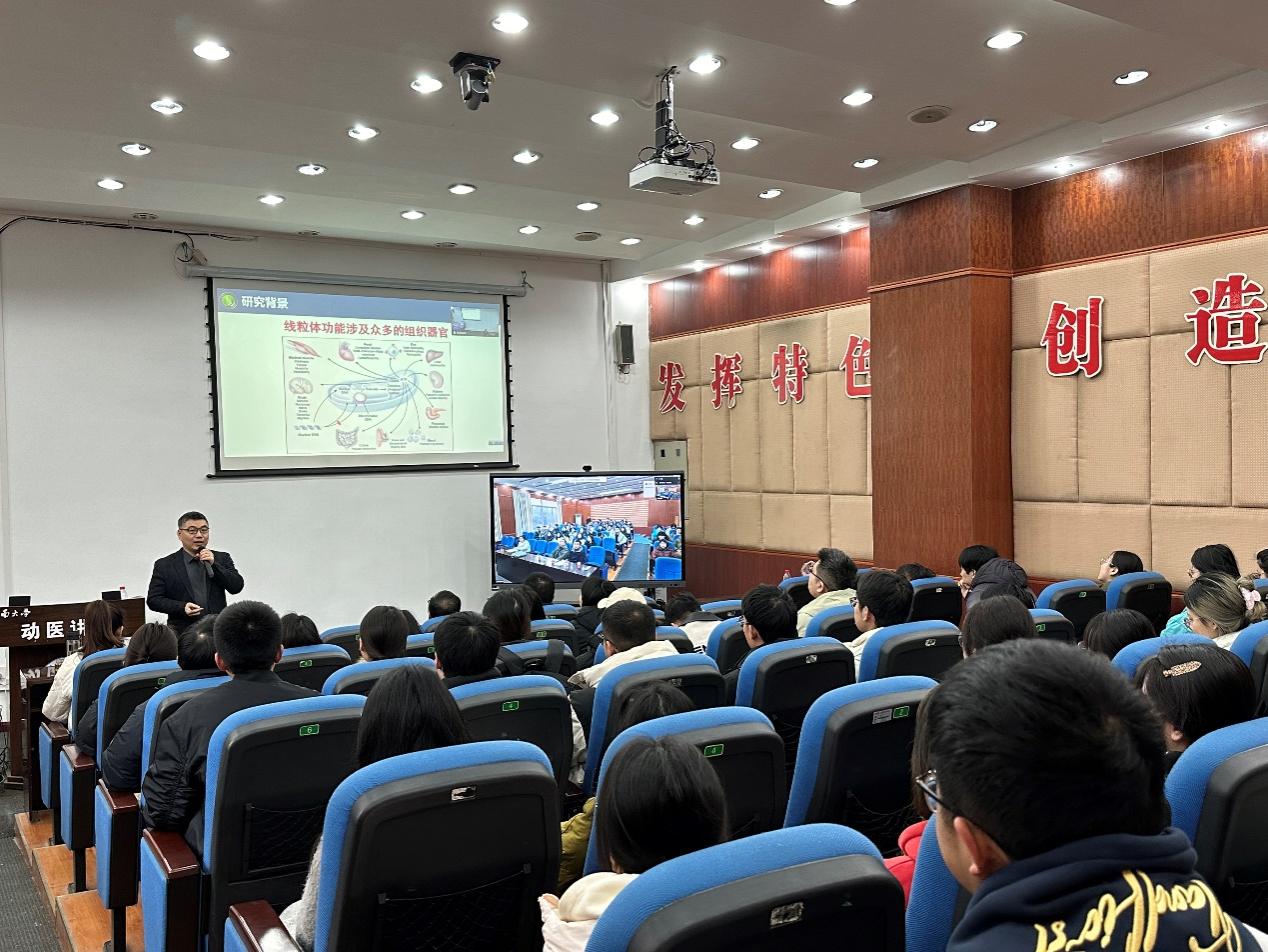 赵晓民教授以“环状RNA在TGEV诱导线粒体损伤过程中的作用机制”为主题,深入剖析了线粒体损伤在TGEV致病过程中的作用,并探讨了环状RNA在调控线粒体通透性转换孔异常开放中的调控机制。此外,还分享了课题组近年来服务乡村振兴中的科研成果和典型案例。赵教授的报告不仅加深了师生们对猪传染性胃肠炎病毒致病机制的理解,还为大家提供了防控动物重大疫病的新思路,参会师生受益匪浅。