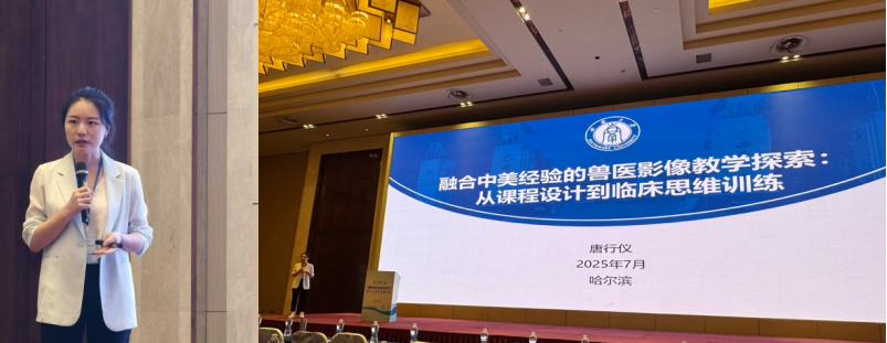 学院唐行仪副教授应邀参会,并作题为《融合中美经验的兽医影像教学探索》的学术报告。报告系统梳理了《兽医影像诊断学》在顶层设计、教学方法及学生临床思维培养等方面的改革与实践,并通过对中美兽医教育体系的深度比较,分享了“国际理念本土化”的实践经验,获得与会专家的广泛关注与积极反馈。